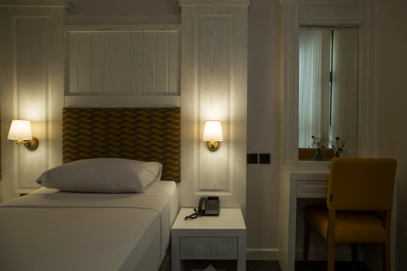 اقامت کودک زیر 3 سال (درصورت عدم استفاده از سرویس) رایگان میباشد و بازه سنی برای اقامت کودک بین 3 الی 7 سال (درصورت عدم استفاده از سرویس) نیم بها محاسبه میگردد. لازم به ذکر است : اقامت رایگان و نیم بها تنها برای یک کودک محاسبه میگردد.
