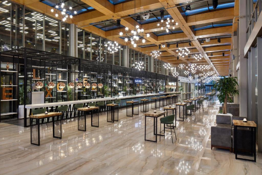 هتل Nirvana Cosmopolitan - Convention & Sports Center واقع در کنار دریا، استراحتگاهی U شکل با دکوراسیون مینیمالیستی پیچیده است. اتاق هایی با بالکن مشرف به دریای مدیترانه و ساحل خصوصی 11 هکتاری ارائه می دهد. فرودگاه آنتالیا تنها 10 کیلومتر با شما فاصله دارد. اتاقهای فوق مدرن دارای نورپردازی خلقی هستند. هر اتاق دارای یک صندلی راحتی چرمی و یک تلویزیون صفحه تخت با کانال های ماهواره ای است. مینی بار روزانه تکمیل می شود. هتل کازموپولیتن نیروانا - مرکز همایش و ورزش دارای اسکله مخصوص به خود است که از ساحل خصوصی خود به دریای مدیترانه امتداد می یابد. مهمانان میتوانند با نوشیدنی در بار ساحلی که مجهز به مبل است، استراحت کنند. هتل Nirvana Cosmopolitan - Convention & Sports Center دارای زمین های ورزشی برای بازی فوتبال، تنیس و مینی گلف است. از طرف دیگر، میهمانان می توانند در اسپا ه