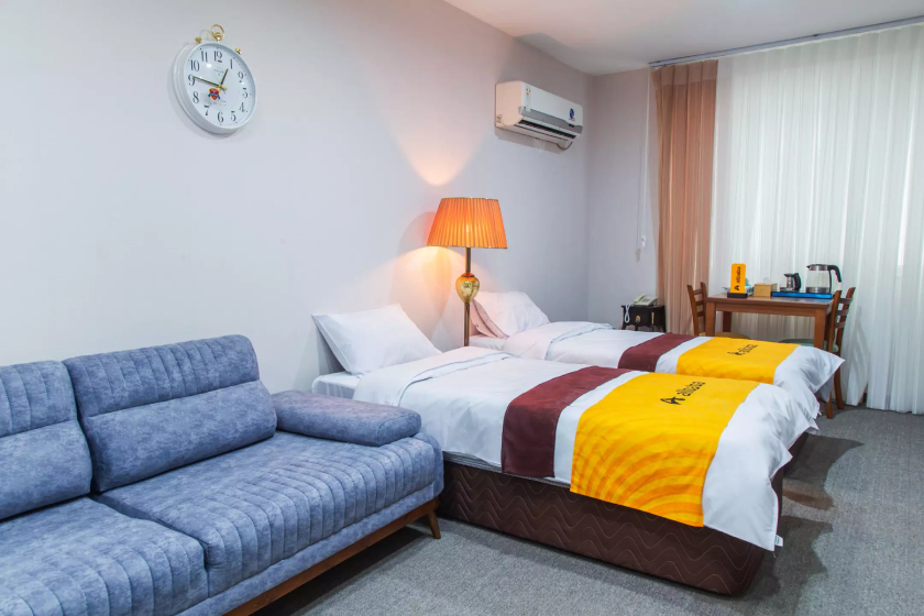 اقامت کودک زیر 2 سال (درصورت عدم استفاده از سرویس) رایگان میباشد و بازه سنی برای اقامت کودک بین 2 الی 5 سال (درصورت عدم استفاده از سرویس) نیم بها محاسبه میگردد. لازم به ذکر است : اقامت رایگان و نیم بها تنها برای یک کودک محاسبه میگردد.